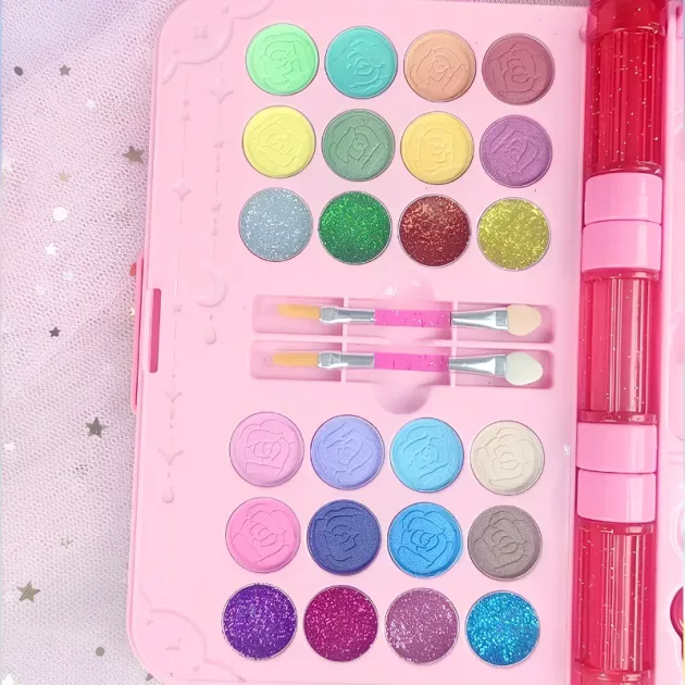 ¡El set de maquillaje es tan colorido! Me encanta cómo todo se sale sólo con un poco de agua, y mi mejor amiga y yo podemos compartir sin preocupaciones.