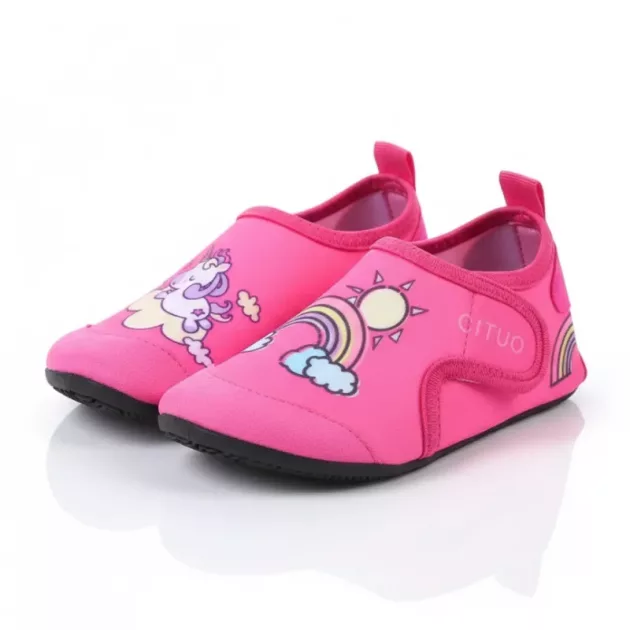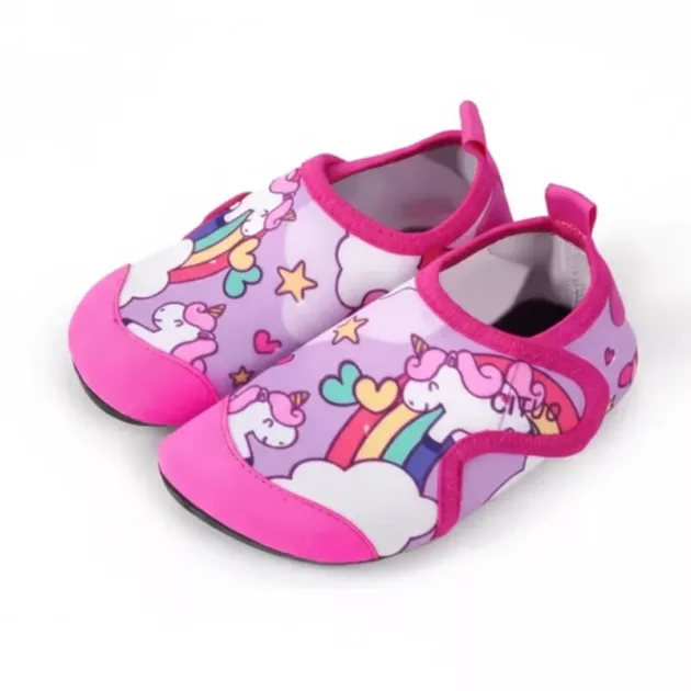 Genial para los días de playa; mi niña disfruta todos los colores y se siente especial llevando unicornios en los pies. Puede pasar del agua a la arena sin problemas.