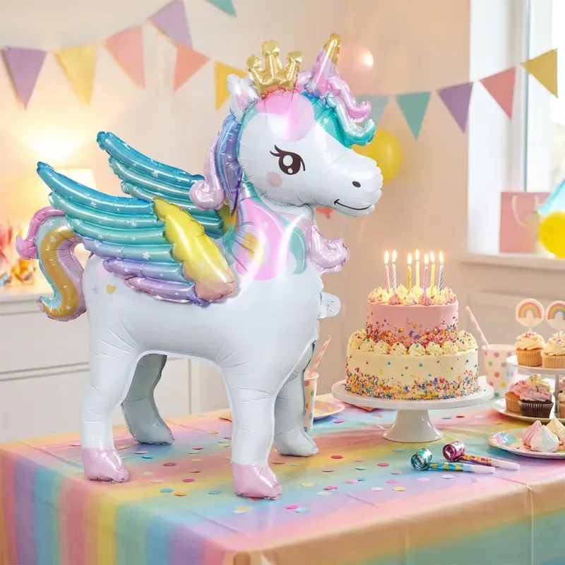 Los colores brillantes y el suave destello convierten cualquier rincón en una fantasía. El diseño de pie permite colocarla fácilmente junto a las mesas de pasteles o los regalos. El papel de aluminio resistente mantiene su forma de manera impecable, para que la celebración luzca perfecta en las fotos. Los padres disfrutan de una decoración sin estrés mientras los niños se sienten realmente especiales.