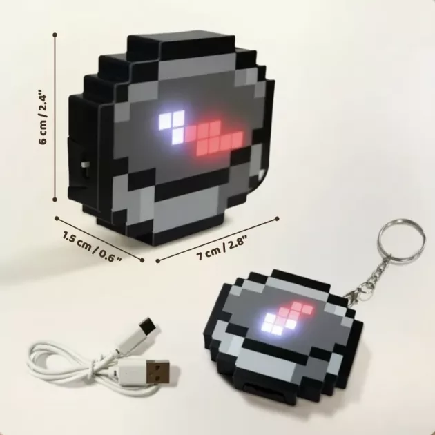 ¡Súper lindo el estilo de arte en píxeles! Lo tengo en mi mochila y mi hermano pequeño quiere uno. Me encanta que no necesito comprarle pilas.