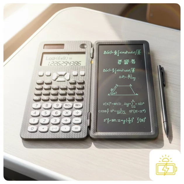 La parte solar funciona incluso cuando las luces del aula están tenues. Además, el respaldo de la batería significa que nunca falla en un examen.
