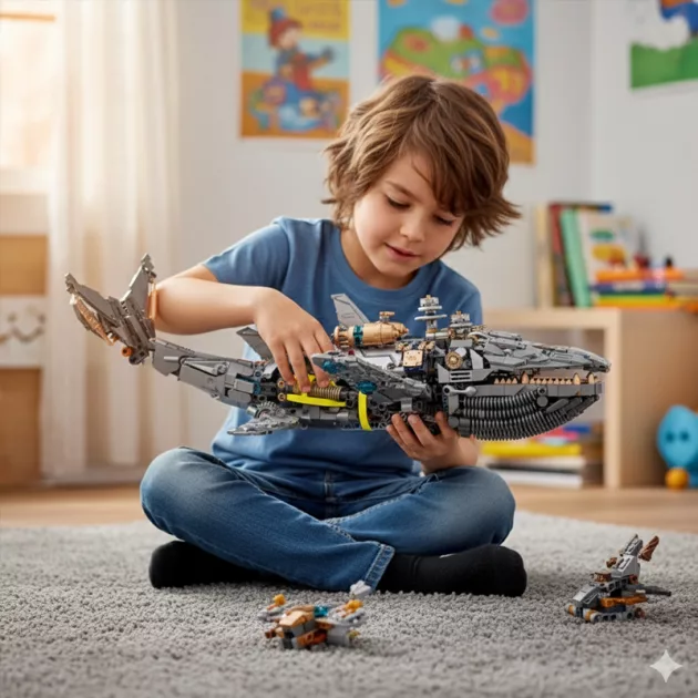 Sin pantallas, solo diversión construyendo animales marinos. Discutimos por quién arma el pulpo pero igual logramos trabajar juntos.