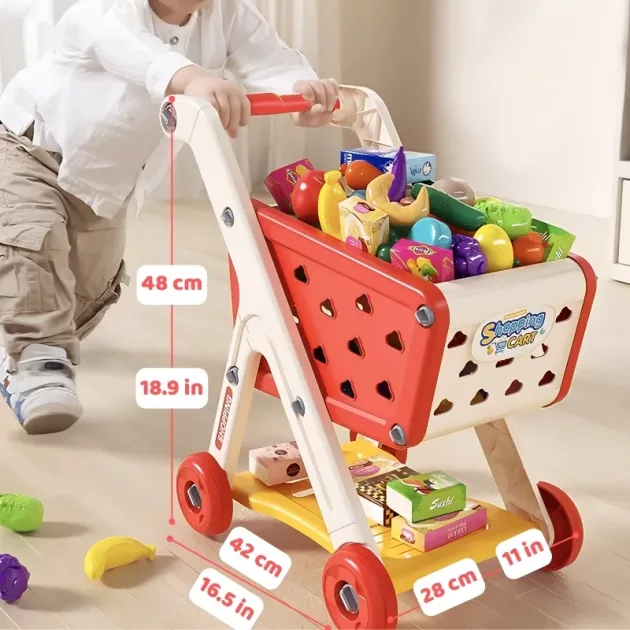 Interacción social - Este carrito de compras es perfecto para jugar roles de fantasía con amigos o familia. Los niños pueden actuar como compradores y tenderos, mejorando sus habilidades de comunicación.