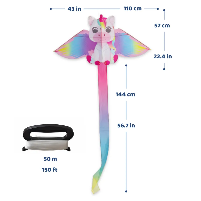 Hecha con tela resistente, el unicornio voló incluso después de una llovizna. Mi hijo no deja de hablar de ella a todos.