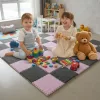 Combinamos los colores con nuestra zona de juegos y a mis hijos les encantan las piezas de rompecabezas. Es muy cómodo para gatear y leer cuentos en el suelo.