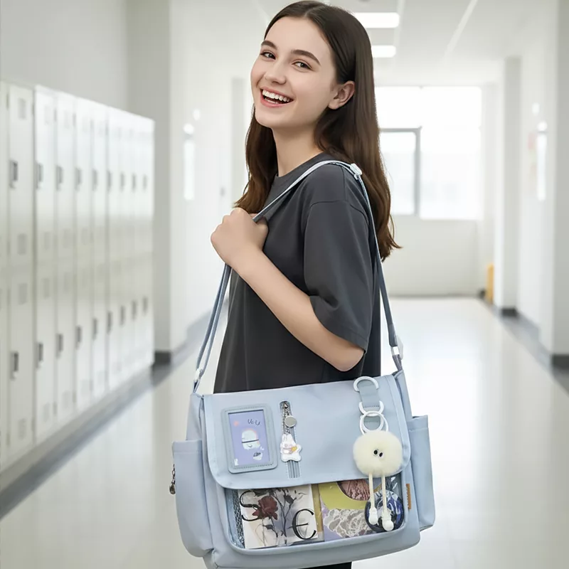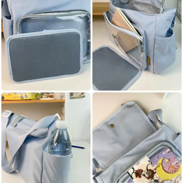 Almacenamiento Espacioso - Varios bolsillos mantienen libros, bocadillos y papelería separados.