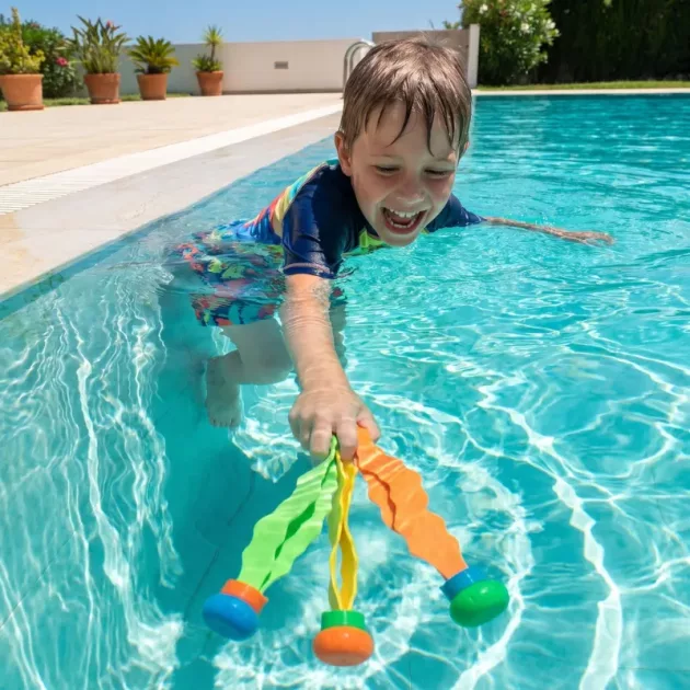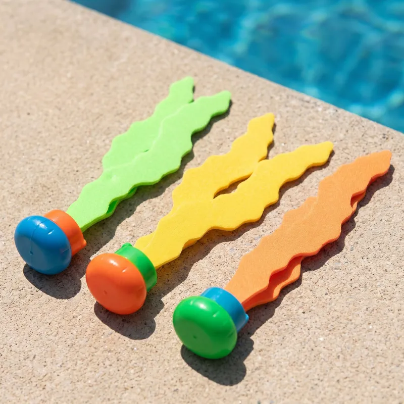 Estos juguetes de buceo cambiaron las clases de natación para mi hijo. Los colores brillantes lo atraen bajo el agua una y otra vez, y su control de la respiración ha mejorado muchísimo.