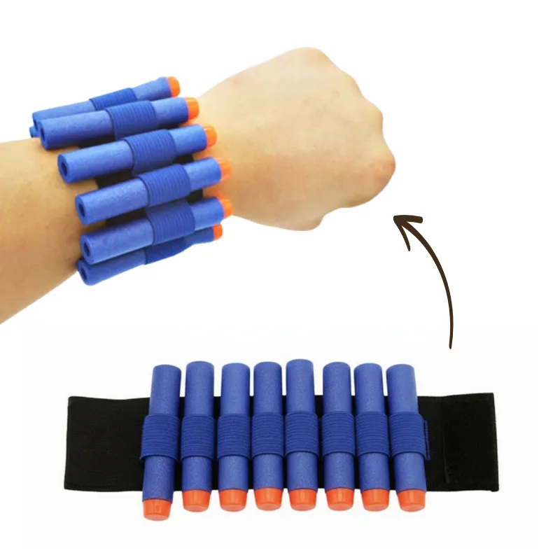 Solía perder mis dardos todo el tiempo, ¡pero ya no! El chaleco los mantiene seguros y fáciles de agarrar. Mi mamá dice que parezco un pequeño soldado.