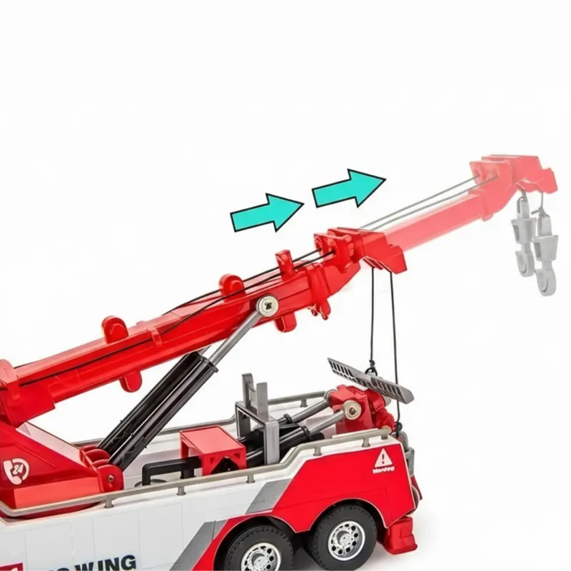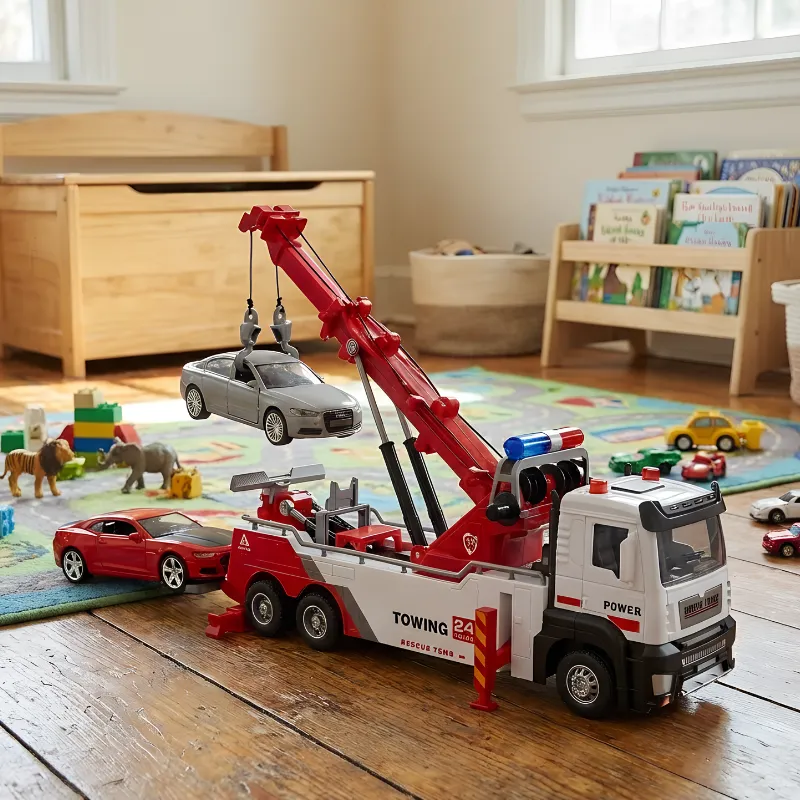 Este camión nos permite jugar juntos sin preocupaciones. Los ganchos hacen que llevar otros juguetes sea muy divertido. Es imprescindible para juegos de rescate imaginarios.
