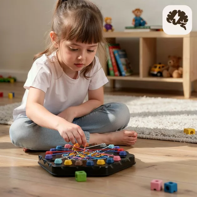 Mira cómo tu hijo se ilumina al enfrentar nuevos retos. Este juego de rompecabezas mantiene las manos ocupadas y la mente enfocada en cada sesión. Los colores brillantes y los nudos únicos despiertan la curiosidad y evitan el aburrimiento. Disfruta de momentos tranquilos mientras tu hijo aprende jugando.