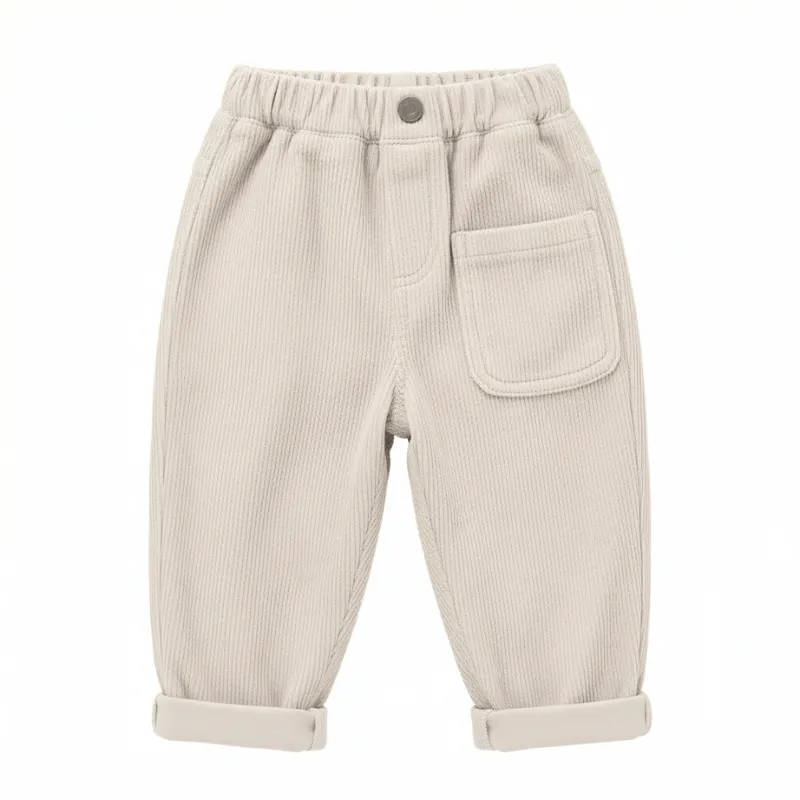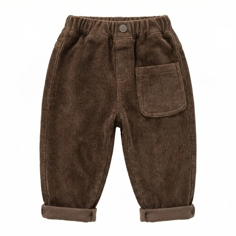 Los días fríos no son un problema cuando la comodidad es lo más importante en todo momento. La pana suave ayuda a mantener las piernas calientes en cada momento de juego al aire libre. El corte holgado permite moverse fácilmente en todas las aventuras en el parque. El estilo sencillo combina con cualquier conjunto y facilita vestirse rápido y sin estrés.