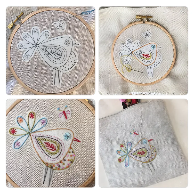 ¡A mi hija le encantó usar el papel para bordar! Su bolsa ahora tiene los diseños más lindos de mariposas y flores. Se enjuagó muy fácil, ¡súper divertido!