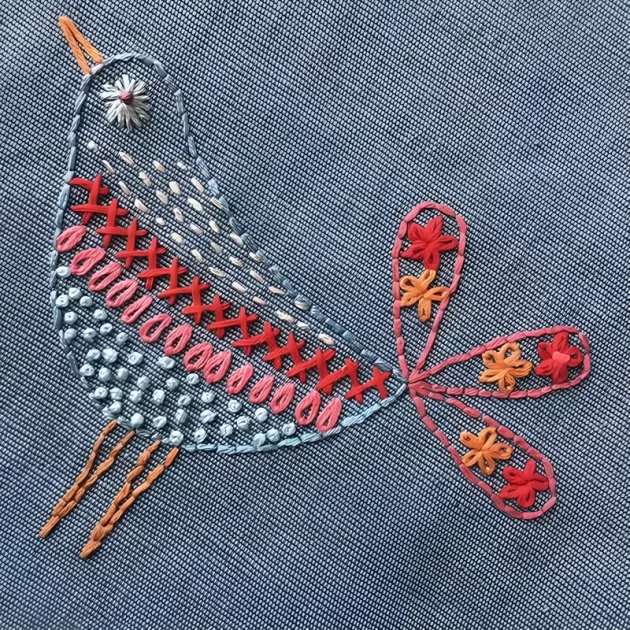 ¡Los pájaros y polillas hicieron que mi chaqueta de mezclilla se vea genial! Probé a bordar con mi hermanito y nos divertimos mucho creando nuevos estilos.