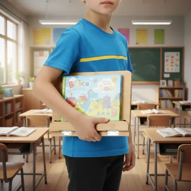 Cada noche, mi papá me lee y usa este soporte. Mantiene las páginas abiertas y firmes, lo que hace que leer juntos sea sencillo.