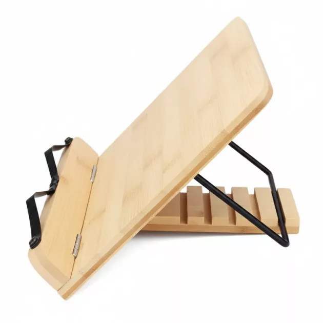 Este atril de lectura se pliega y cabe en mi cajón cuando termino. Además, me parece que el bambú se ve muy bonito.