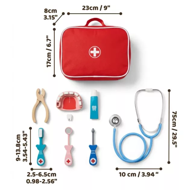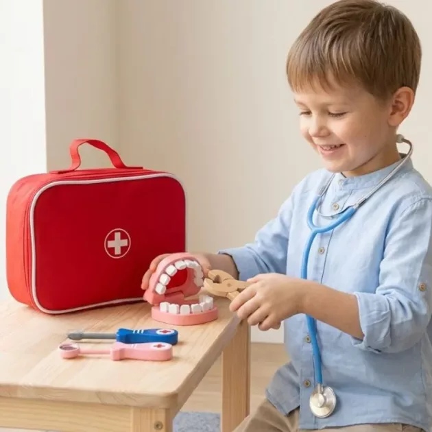 Despierta la creatividad y la confianza mientras tu hijo explora roles de cuidado. Cada pieza de madera se siente segura y cómoda en manos pequeñas. Obsérvalo practicar la empatía y la comunicación en cada sesión de juego. Este set ayuda a aliviar las visitas al médico al hacer que la medicina sea divertida.