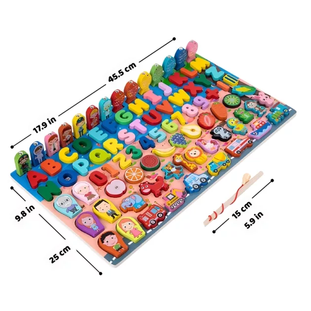Tablero Ocupado Montessori de Madera con Abecedario y Números – Juguete Preescolar para Niños