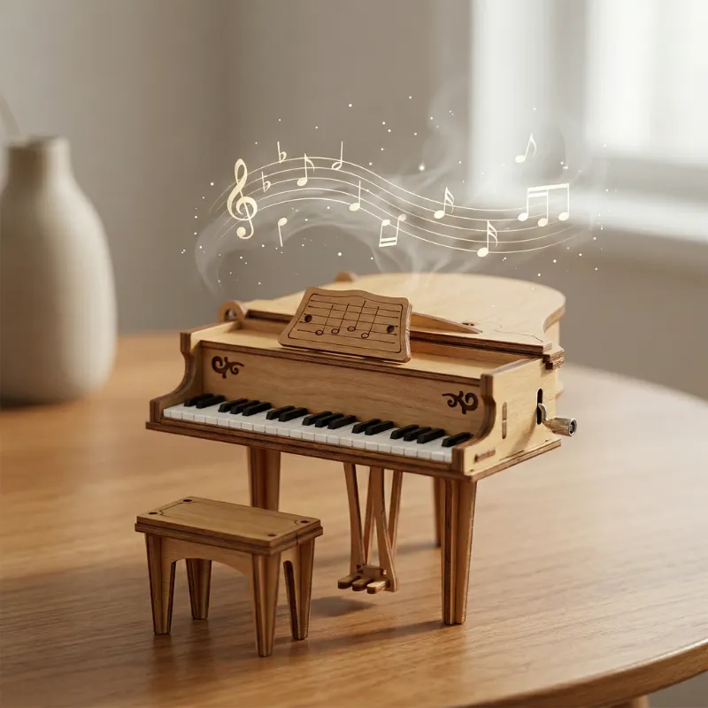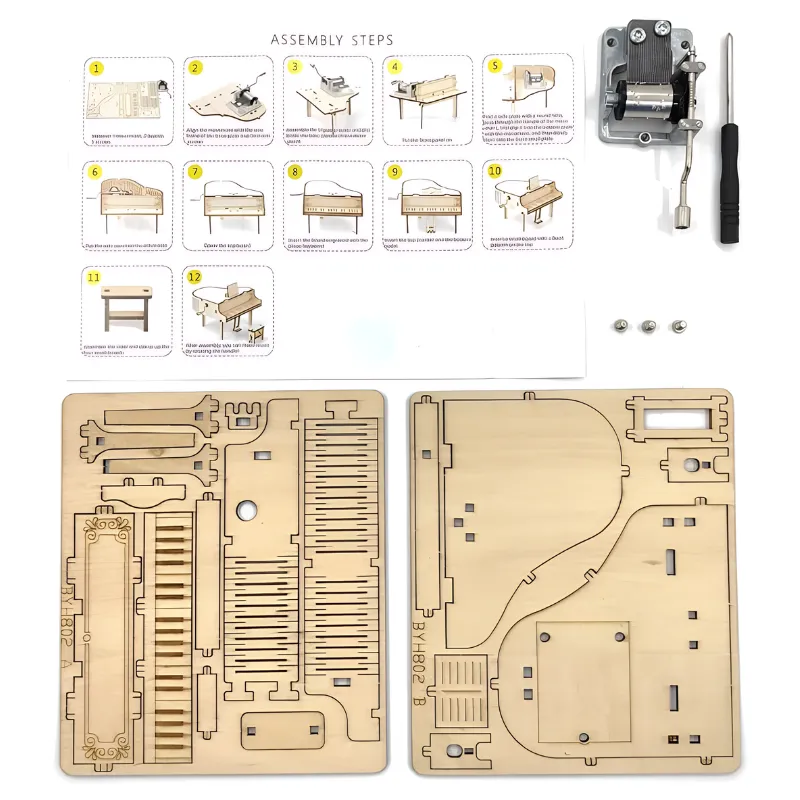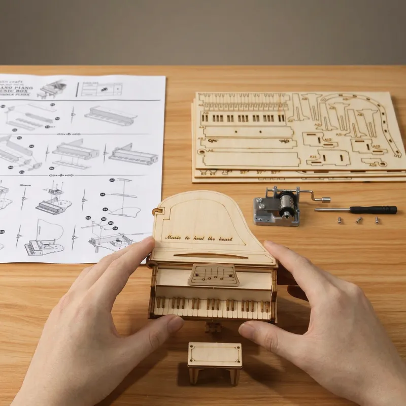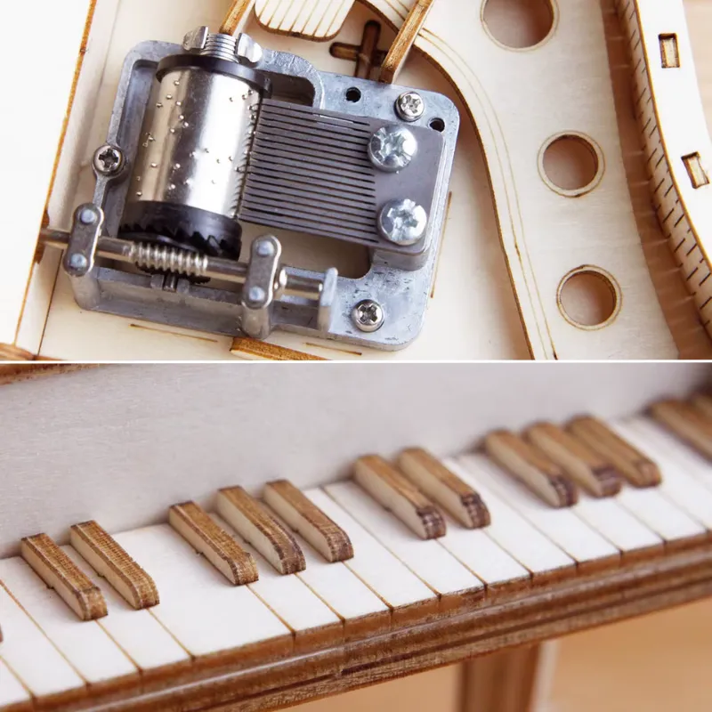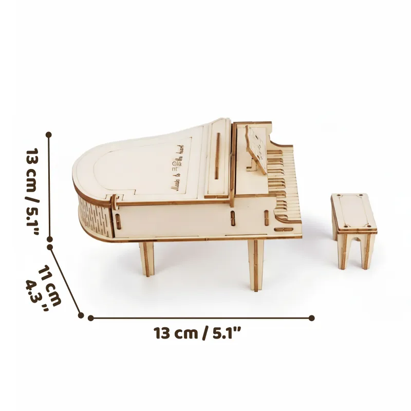 Estoy muy orgullosa de mi piano de madera. ¡Realmente toca una melodía! Aprendí a tener paciencia y seguir cada paso, y me sentí genial cuando lo terminé.